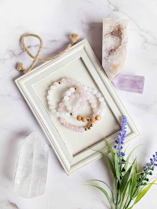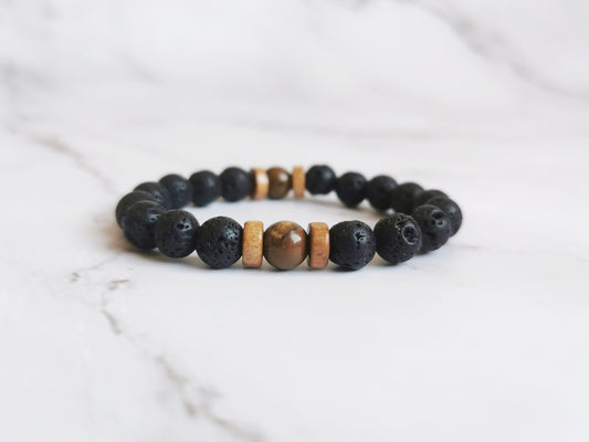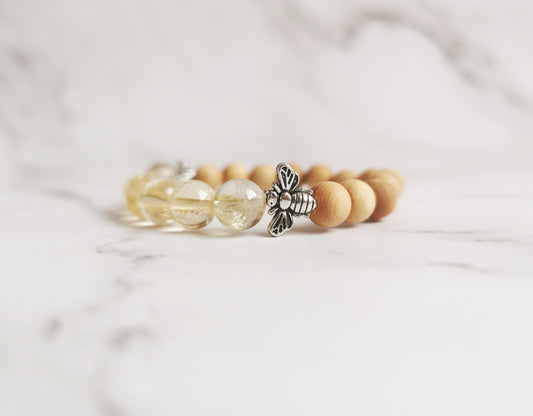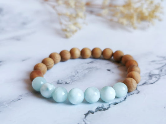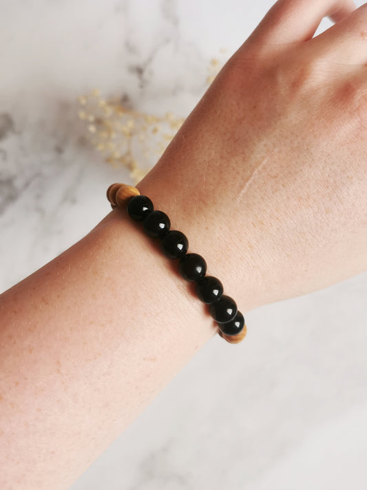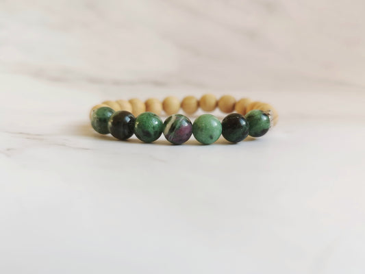 Ruby Zoisite and Cedarwood Leaf Bracelet
