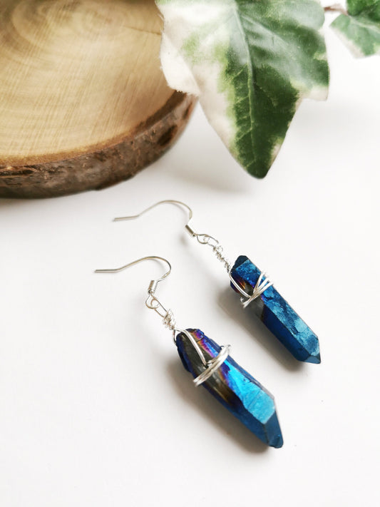 Cobalt Blue Quartz Crystal Earrings